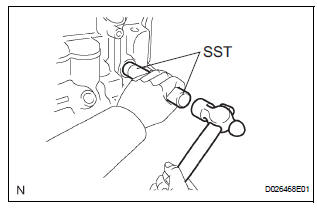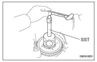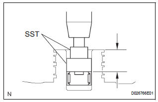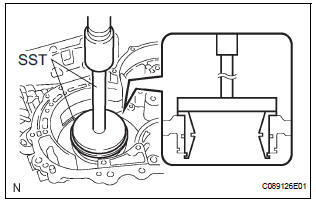 (b) Using SST and a press, install the underdrive cylindrical roller bearing.