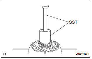 (b) Using SST and a press, install the tapered roller bearing to the counter drive gear.