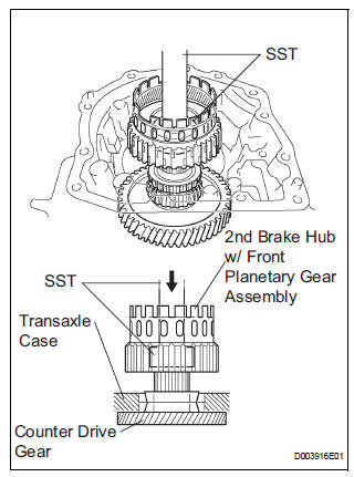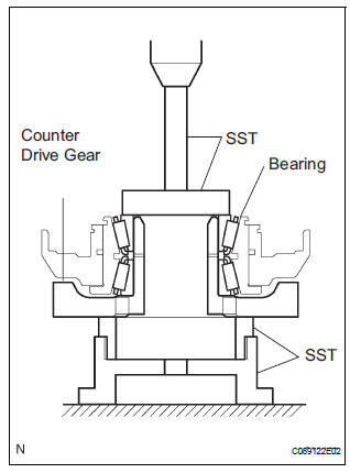(c) Using SST and a press, install the counter drive gear and bearing to the transaxle case.