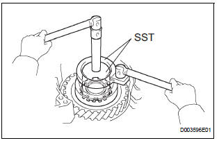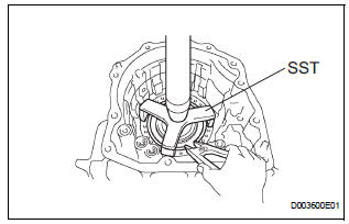 (e) Using SST and a torque wrench, measure the turning torque of the bearing while rotating SST at 60 rpm. When the measured value is not as specified, gradually tighten the nut until it reaches the specified value.