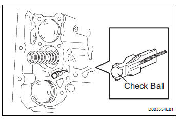 | NOTICE: Be sure to place the spring in the hole in the check ball body. Be careful about the direction of the parts. |
