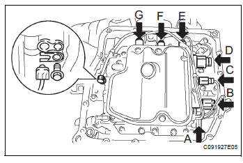 Torque: 6.6 N*m (67 kgf*cm, 58 in.*lbf) (c) Connect the 7 solenoid connectors.