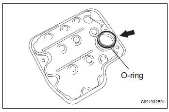 | NOTICE: Make sure that the O-ring is not twisted or pinched. Apply sufficient ATF to the O-ring before installation. |