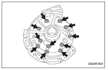a) Set the stator shaft and align it with each bolt hole.
