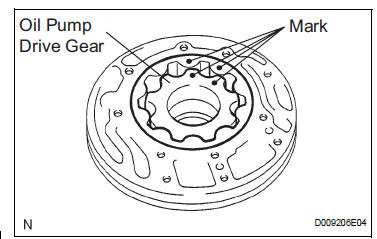 (a) Coat the front oil pump driven gear with ATF, and install it to the oil pump body with the marked side facing upward.