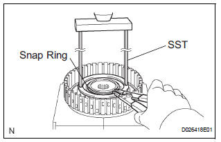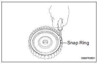 (f) Be sure that the end gap of the snap ring is not aligned with the spring retainer claw.