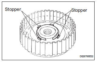 NOTICE: The end gap of the snap ring should not align with any of the stoppers.