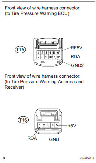 The signals are transmitted to the tire pressure warning antenna and receiver on the body as radio waves and then sent to the tire pressure warning ECU.