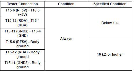 1 CHECK HARNESS AND CONNECTOR (ECU - RECEIVER)