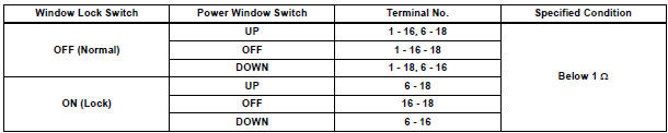 3 INSPECT POWER WINDOW MASTER SWITCH
