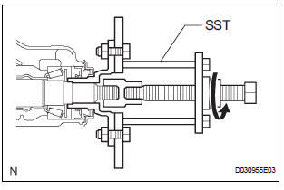 10. REMOVE REAR DIFFERENTIAL DRIVE PINION BEARING SPACER