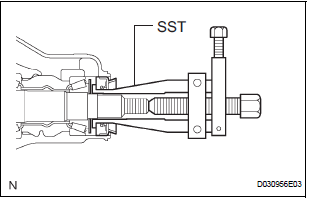 9. REMOVE REAR DRIVE PINION FRONT TAPERED ROLLER BEARING
