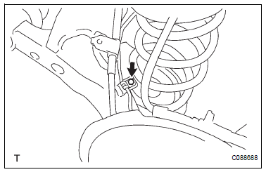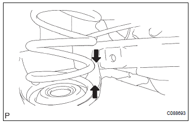 (a) Apply a shop rug between the coil spring rear LH and rear axle beam assembly.