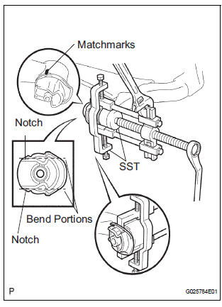 (a) Place matchmarks on the 2 notches of the bushing and rear axle beam assembly.
