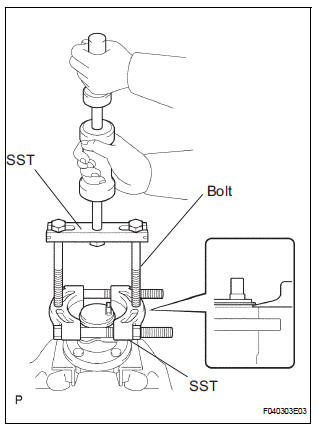 (b) Using a pin punch and hammer, drive out the 2 pins and remove the 2 attachments from SST.