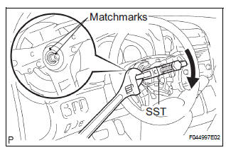 (b) Put matchmarks on the steering wheel assembly and main shaft assembly.