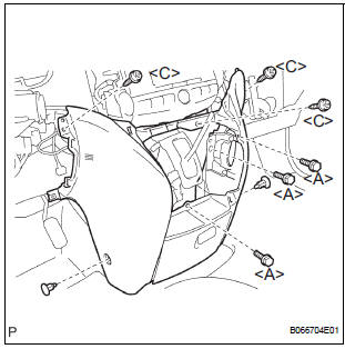 - Remove the 3 screws <C> and 3 bolts <A>.