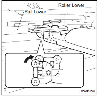 - Rotate the base of the slide door roller lower in the