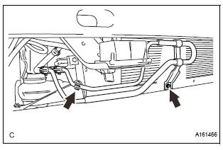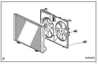 (a) Remove the 2 bolts and separate the condenser assembly from the radiator assembly with fan shroud and fan motor.