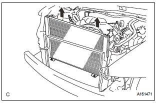 (a) Remove the 2 radiator support lowers from the radiator assembly.