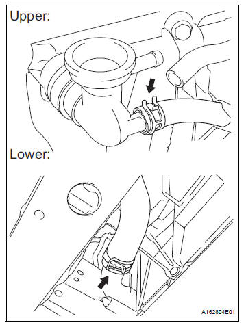 (a) Disconnect both connections of the No. 1 radiator hose from the radiator.