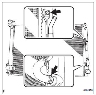 (a) Remove the 2 bolts and fan shroud with fan motor from the radiator.