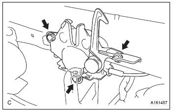 (c) Disconnect the cable and remove the hood lock assembly.
