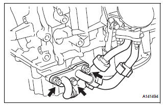 (a) Remove the bolt and 2 nuts, and disconnect the oil cooler pipe from the oil pan sub-assembly.