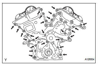 (a) Remove the 23 bolts and 2 nuts as shown in the illustration.