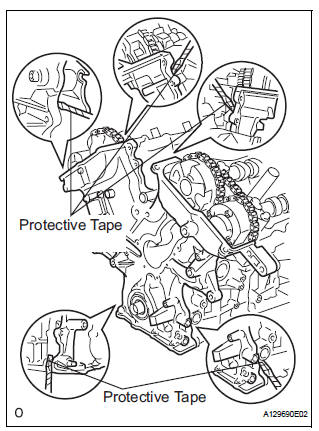 | NOTICE: Be careful not to damage the contact surfaces of the cylinder head, cylinder block and chain cover. |