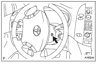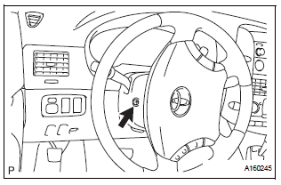 (c) Turn the steering wheel counterclockwise to gain access to the screw and remove the screw.