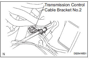 (d) Disconnect the transmission control cable assembly from the transmission control cable bracket No.2.