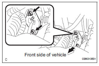 (e) Remove the 2 nuts and disconnect the transmission control cable assembly from the vehicle.