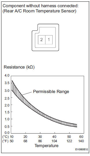If the resistance is not as specified, replace the rear A/C room temperature sensor.