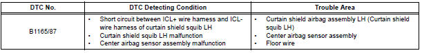 DTC B1165/87 is recorded when a short circuit is detected in the curtain shield squib LH circuit.