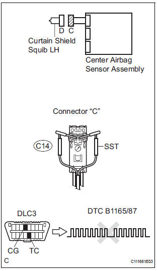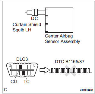 HINT: Codes other than DTC B1165/87 may be output at this time, but they are not related to this check.