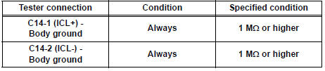 CAUTION: Never connect a tester to the curtain shield airbag assembly LH (curtain shield squib LH) for measurement, as this may lead to a serious injury due to airbag deployment.