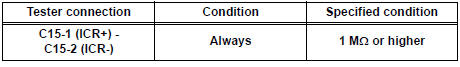 CAUTION: Never connect a tester to the curtain shield airbag assembly RH (Curtain shield squib RH) for measurement, as this may lead to a serious injury due to airbag deployment.