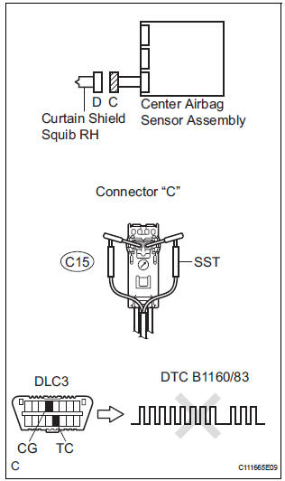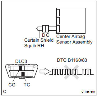 HINT: Codes other than DTC B1160/83 may be output at this time, but they are not related to this check.
