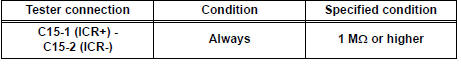 CAUTION: Never connect a tester to the curtain shield airbag assembly RH (Curtain shield squib RH) for measurement, as this may lead to a serious injury due to airbag deployment.