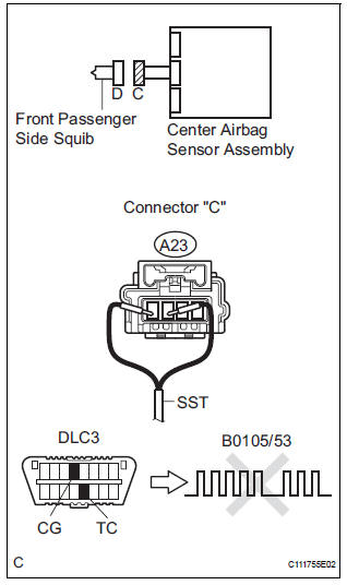 OK: DTC B0105/53 is not output. HINT: Codes other than code B0105/53 may be output at this time, but they are not related to this check.