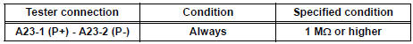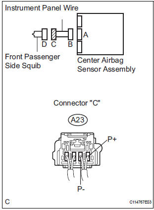 CAUTION: Never connect a tester to the front passenger airbag assembly (front passenger side squib) for measurement, as this may lead to a serious injury due to airbag deployment.