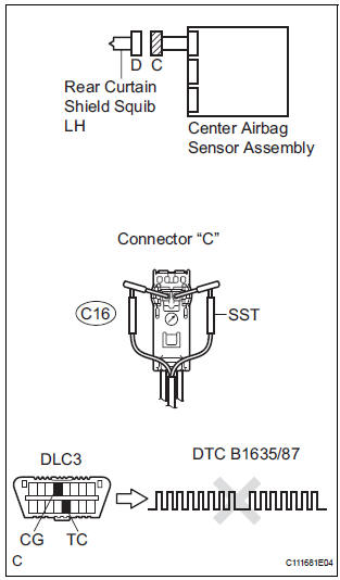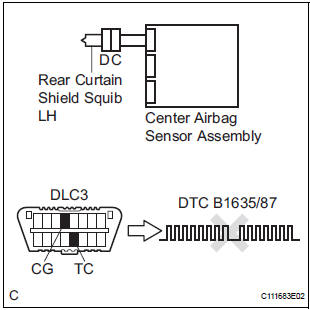 HINT: Codes other than DTC B1635/87 may be output at this time, but they are not related to this check.