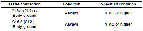CAUTION: Never connect a tester to the curtain shield airbag assembly LH (Rear curtain shield squib LH) for measurement, as this may lead to a serious injury due to airbag deployment.