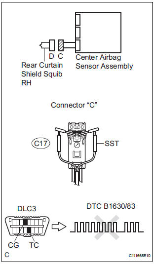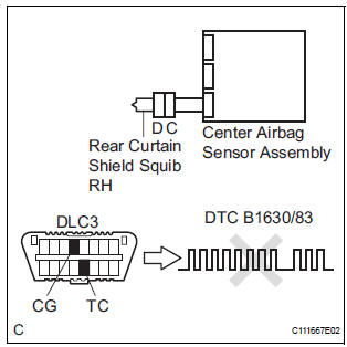 OK: DTC B1630/83 is not output. HINT: Codes other than DTC B1630/83 may be output at this time, but they are not related to this check.