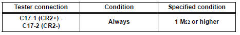 CAUTION: Never connect a tester to the curtain shield airbag assembly RH (Rear curtain shield squib RH) for measurement, as this may lead to a serious injury due to airbag deployment.