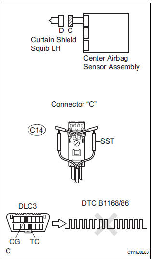 HINT: Codes other than DTC B1168/86 may be output at this time, but they are not related to this check.
