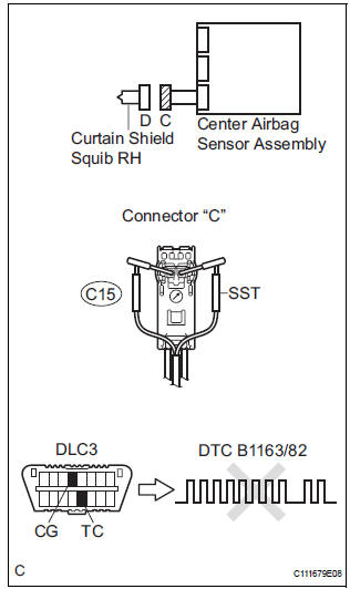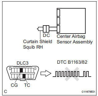 OK: DTC B1163/82 is not output. HINT: Codes other than code B1163/82 may be output at this time, but they are not related to this check.