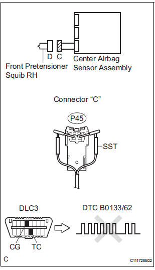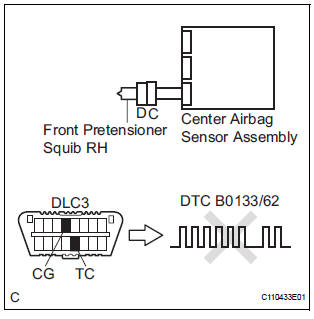 OK: DTC B0133/62 is not output. HINT: Codes other than code B0133/62 may be output at this time, but they are not related to this check.