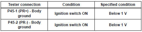 CAUTION: Never connect a tester to the front seat outer belt assembly RH (front pretensioner squib RH) for measurement, as this may lead to a serious injury due to airbag deployment.
